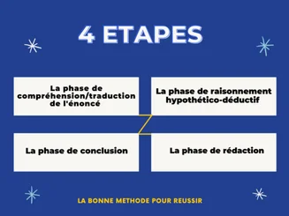 - Une phase de raisonnement hypothético-déductif (hypothèse, proposition, conclusion)